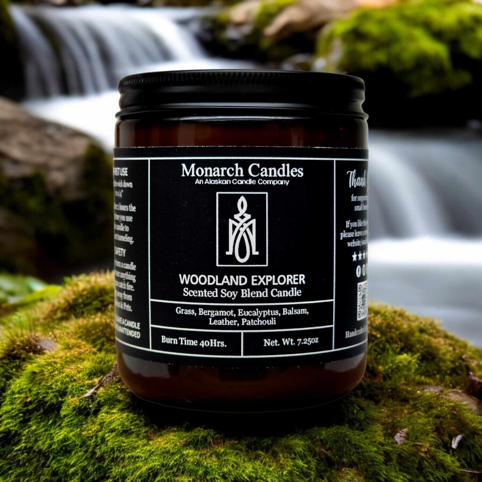 The "Woodland Explorer" candle brings the essence of the forest to your home. Fresh grass and bergamot provide a crisp start, followed by eucalyptus and balsam for a calming forest atmosphere. Leather and patchouli add a warm, earthy depth. Perfect for adventurers and nature lovers.